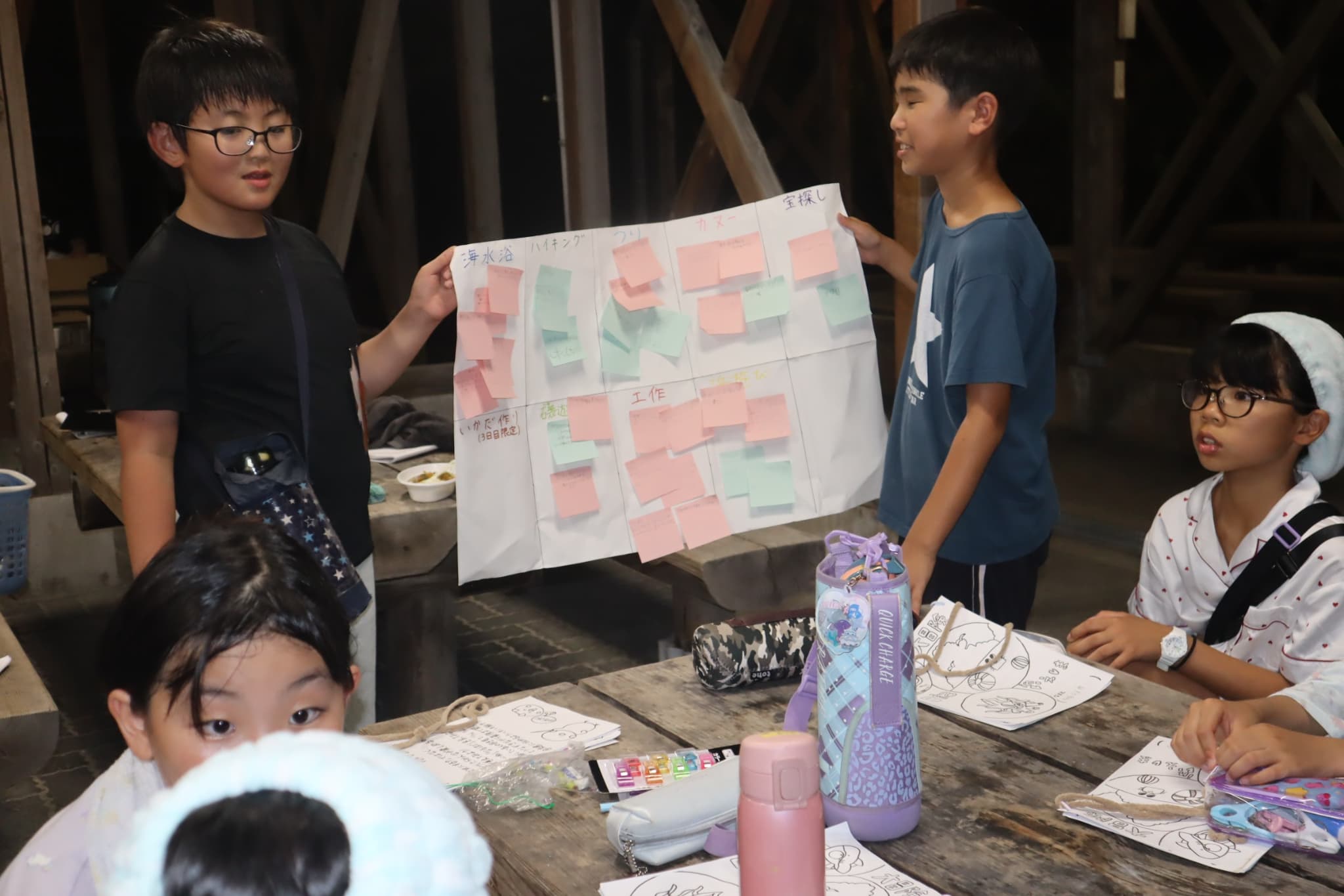 翌日の午前・午後にどんな活動をするのか、グループで話し合って決めます
